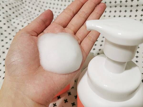 我最滿意的就是寶寶沐浴慕斯的壓頭設計,壓一下的量就有半個手掌多的綿密泡沫,洗頭洗全身都剛剛好