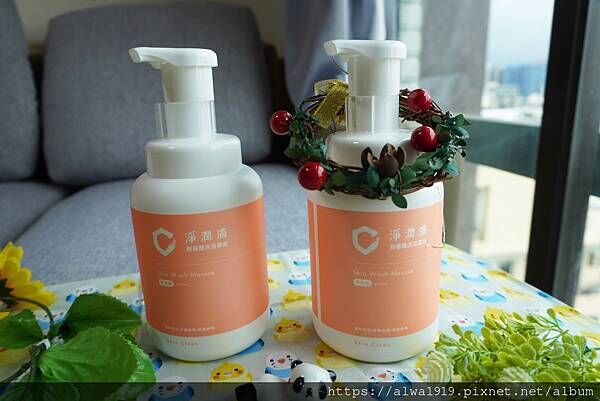 「淨淨胺基酸洗浴慕斯淨潤膚」包裝簡約,設計很耐看。