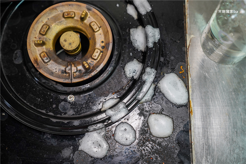 廚房第二個大魔王就是排油煙機跟瓦斯爐,來不及關小火湯湯水水溢出、油膩醬汁滴的到處都是,沒有馬上處理,乾掉後更難清潔,淨淨濃縮家事皂超強潔淨力,高效去油