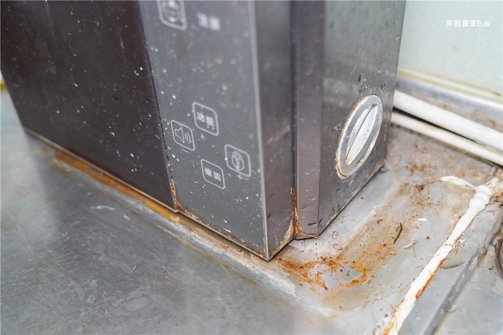 飲水機被管線限制移動範圍,底層卡了一層垢,淨淨濃縮家事皂泡沫細緻,深入縫隙徹底清潔