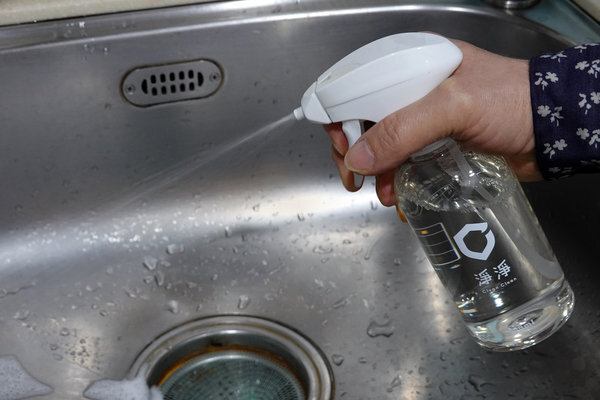 噴上這種中性的家事皂再輕輕擦洗,之後用清水沖洗乾淨,原本髒兮兮的水槽就能變得亮晶晶,連旁邊的人造石卡的髒污也能順便去除。