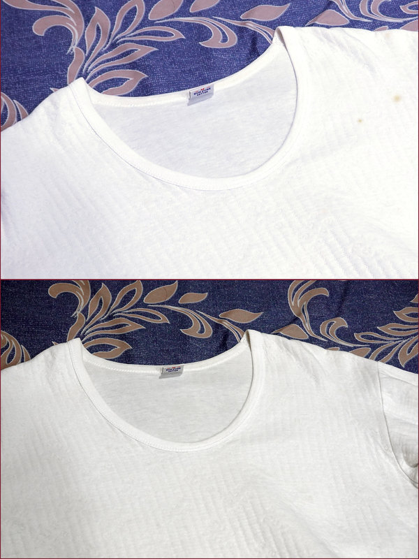 前幾天小姪子在家吃烤雞時不小心把醬汁噴到身上,剛沾到醬汁的衣物稍微用衛生紙擦過,再噴上淨淨濃縮家事皂,稍微搓洗一下後就能將醬汁洗乾淨了。