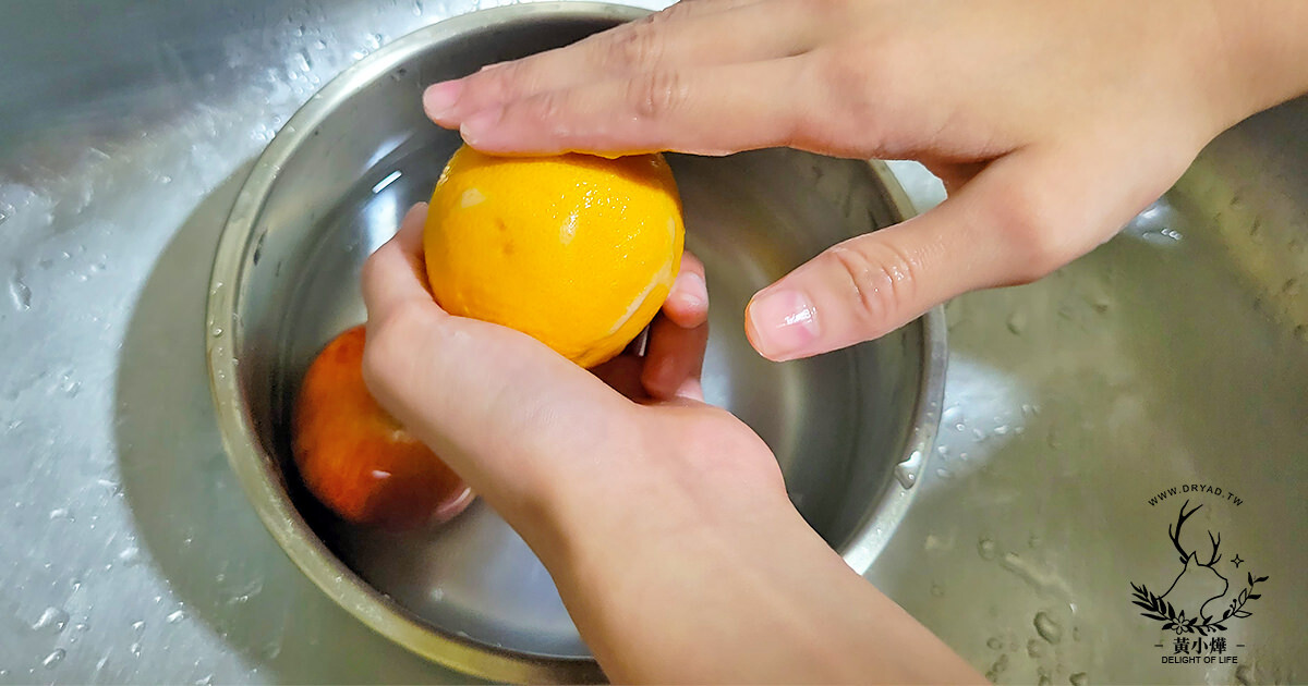 因為我和室友都是懶鬼,所以我們比較常直接把泡泡擠壓在蔬果上面,然後放入裝滿水的地方,邊浸泡邊開始簡單搓揉,