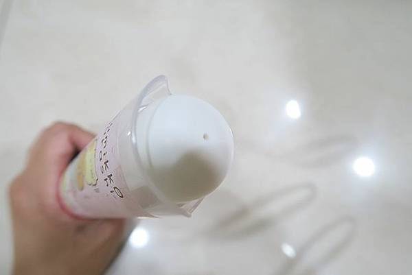 用手指蓋住氣孔輕輕一壓,白色的牙膏就跑出來囉!