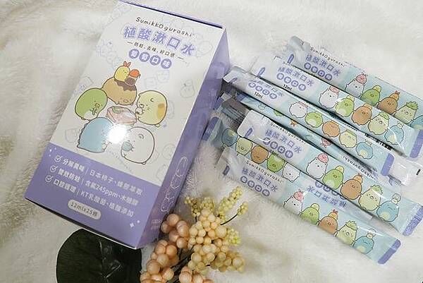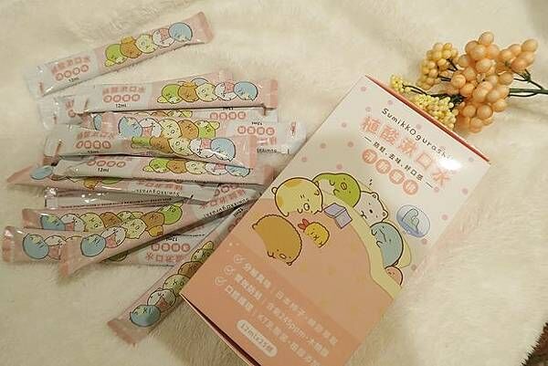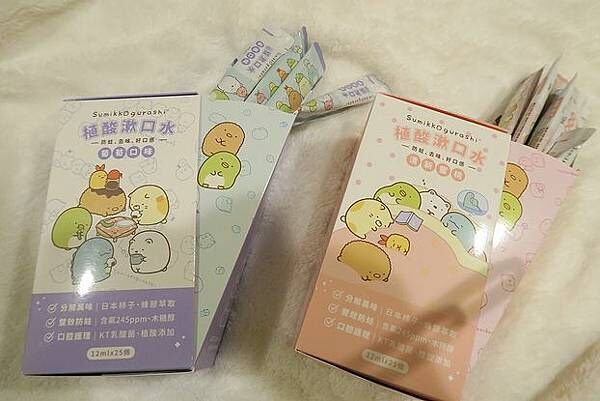 一樣都是角落小夥伴授權,左邊是葡萄,右邊是蜜桃,要注意植酸漱口水的蜜桃口味含有微量薄荷,如小朋友有蠶豆症或對薄荷過敏,請不要使用;