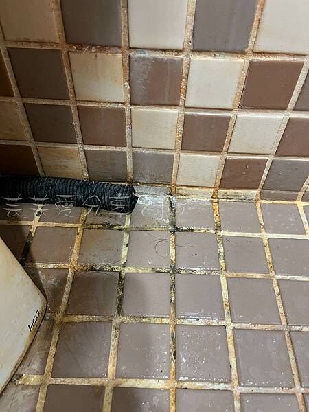 浴室地板比較久的黃垢、霉斑,厚敷以後再多停留5分鐘後刷洗,也變乾淨很多唷!