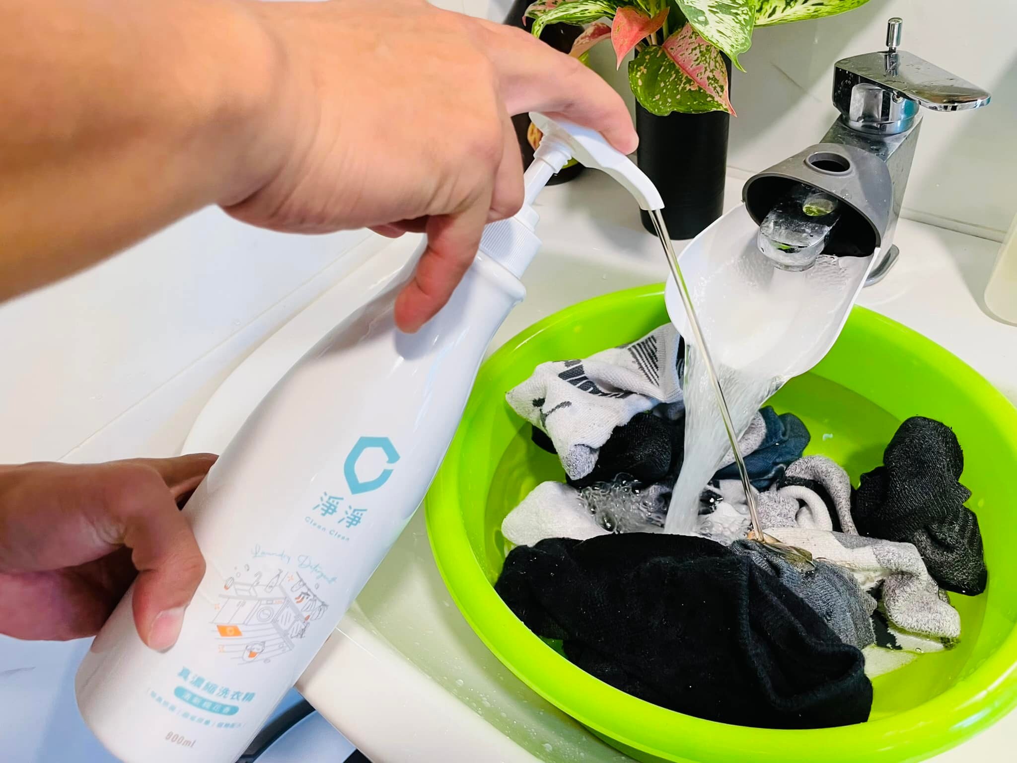平時襪子GM都會襪子沖過壓一下淨淨洗衣精浸泡