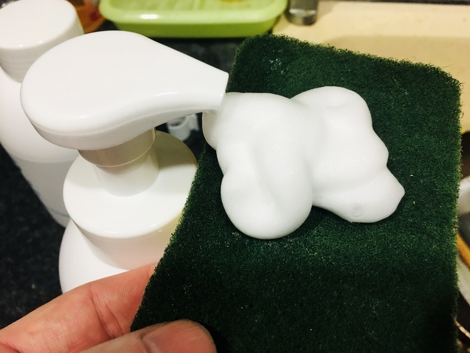 泡沫好細緻,輕輕一抹,微小的泡泡就把油膩迅速帶走了