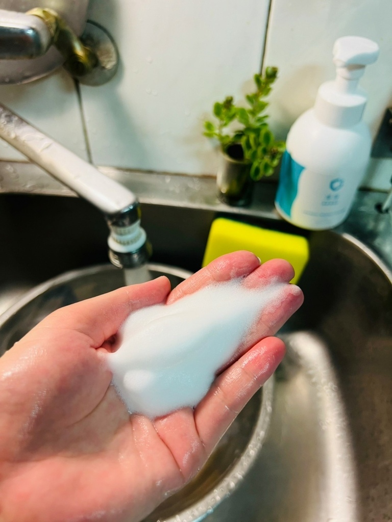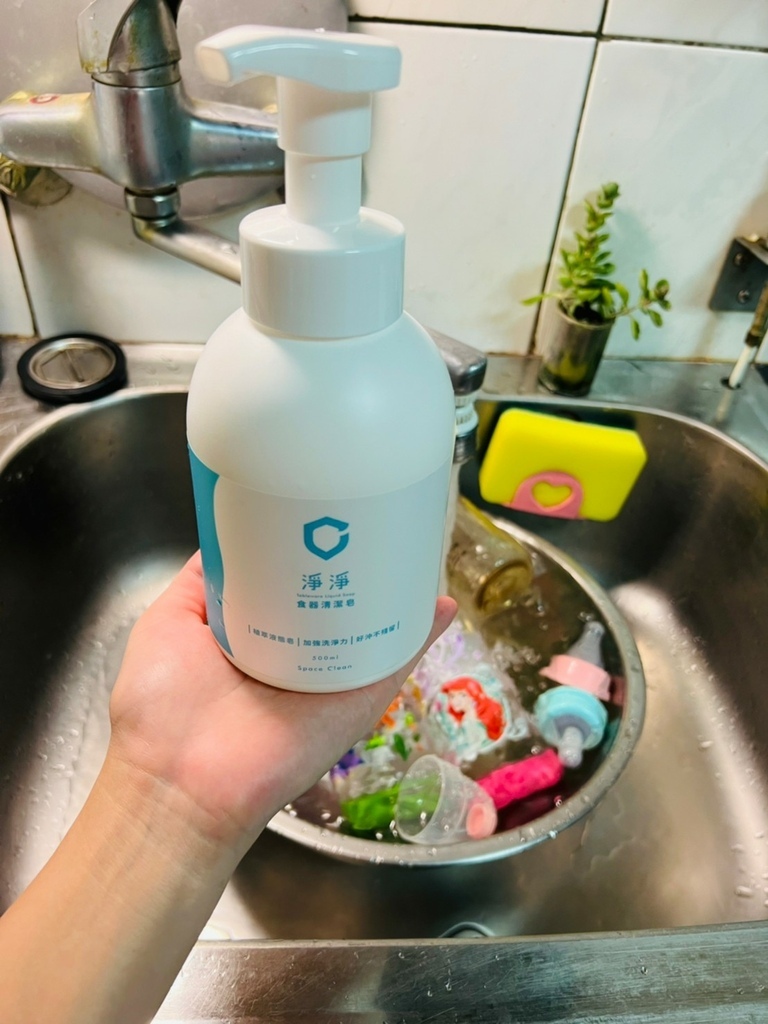 剛換淨淨冬爸就說奶瓶的奶垢比較好刷! 清潔皂的幕斯很好沖,也比較省水