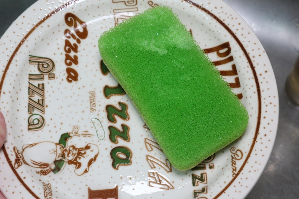 飯編實際清洗自家裝了蔥肉餅點心的碗盤,原本覺得很油膩