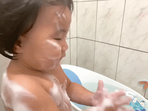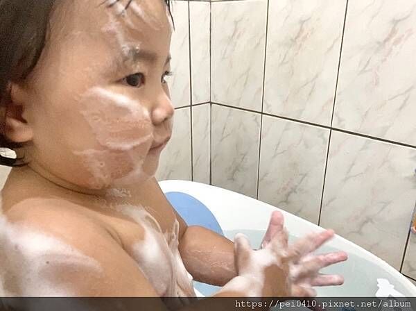 也會自己玩起泡泡,趁機教Lina幫自己洗身體喔~