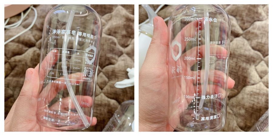 因為是高濃縮的家事皂,需經過加水稀釋,再搭配噴瓶使用,