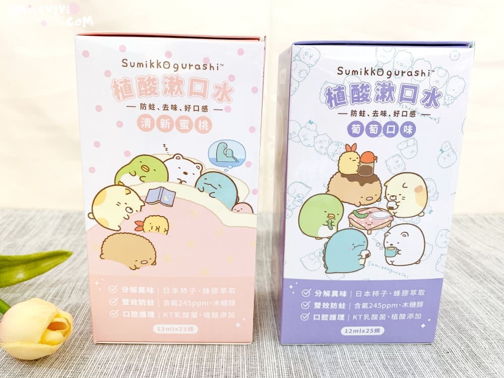 一起來開箱兩種口味的兒童植酸漱口水嚕!一樣是超可愛的角落小夥伴,兩種口味一個是清新蜜桃,一種是葡萄。