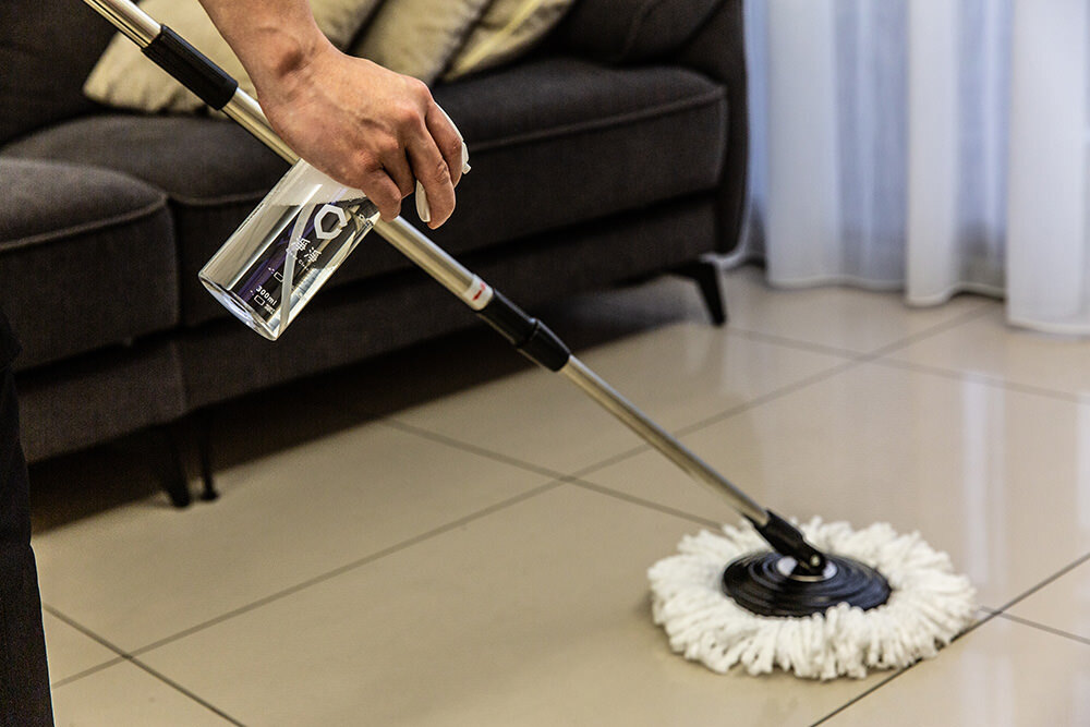 客廳地板因為放有兒子遊戲的墊子,幾乎是久久一次才移開用清水簡單拖地,曾經發生過地墊掀起來有臭酸味(懷疑是奶或副食品曾掉落墊子下),墊子掀起來地面其實除了灰塵、頭髮外,還會有一處一處黑黑的髒汙,是黏在地面上的;單用清水拖地不一定能完全地清除乾淨。