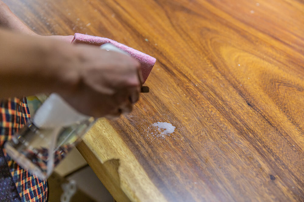 作為餐桌的原木桌,是很多用途的桌子,除了用餐在此之外,也會在這邊用電腦、寫字看書喝咖啡等,幾乎生活作息有一大部分都會在桌子旁,因為桌子常有長年的油膜,用一般抹布擦拭根本擦不乾淨。