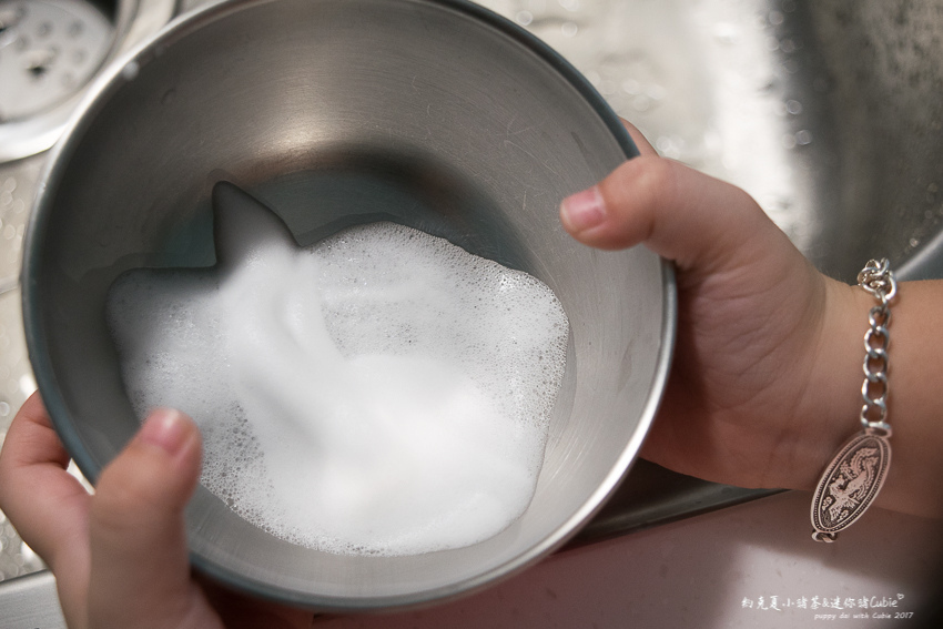 使用這款清潔皂在刷洗時泡泡雖然不亞於之前的清潔劑,不過在沖洗時可以明顯感受到泡泡很快就被水給帶走~