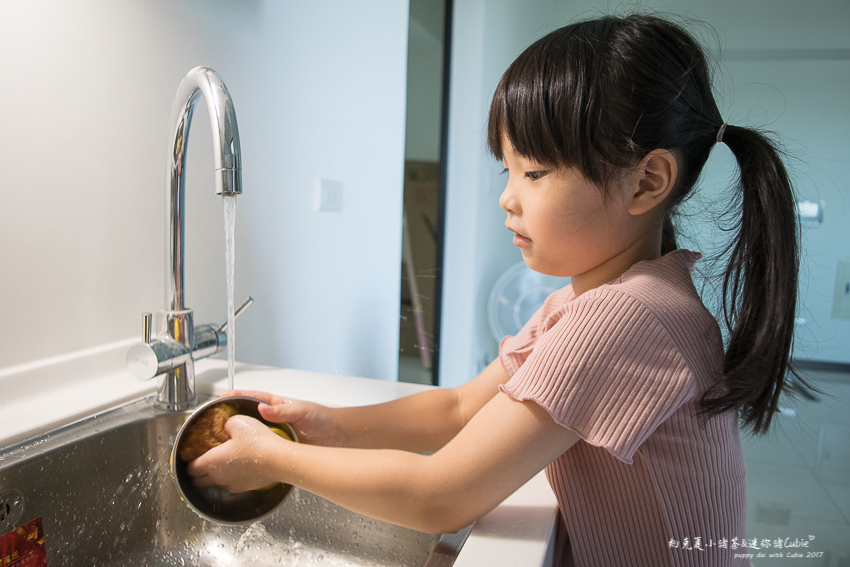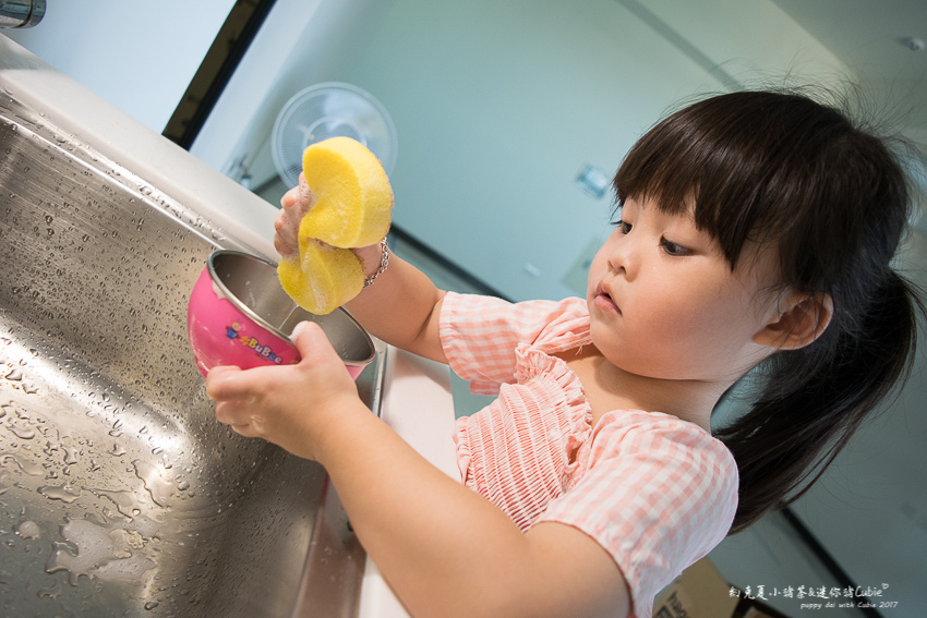 小人在學校時老師就有養成讓她們自己洗碗的習慣,當然熱愛(玩水+玩泡泡)的小人也是非常熱衷!
