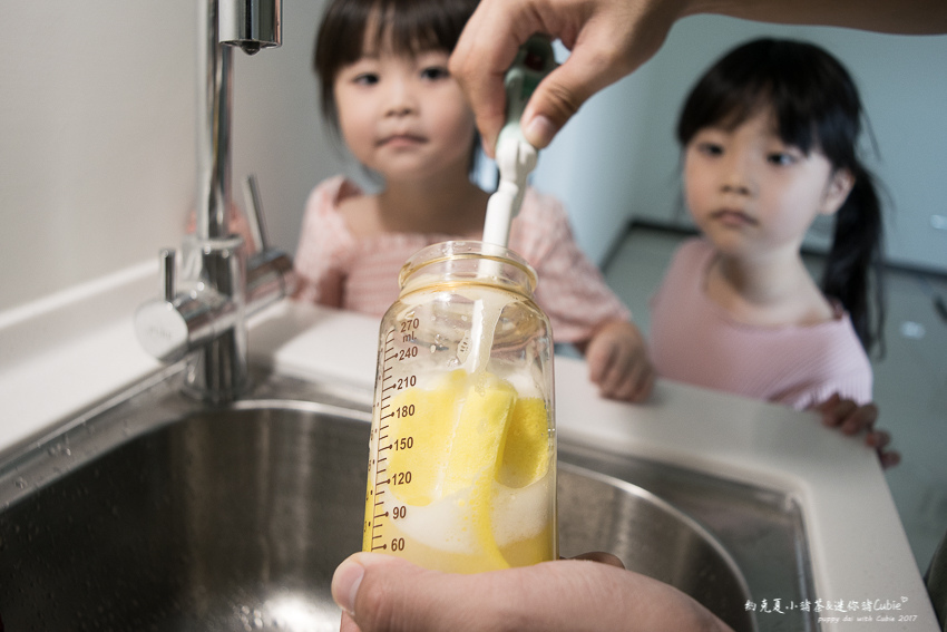 細緻綿密的泡泡成功瓦解頑固的奶垢~還給小人一個乾淨如新的奶瓶~(鼓掌)