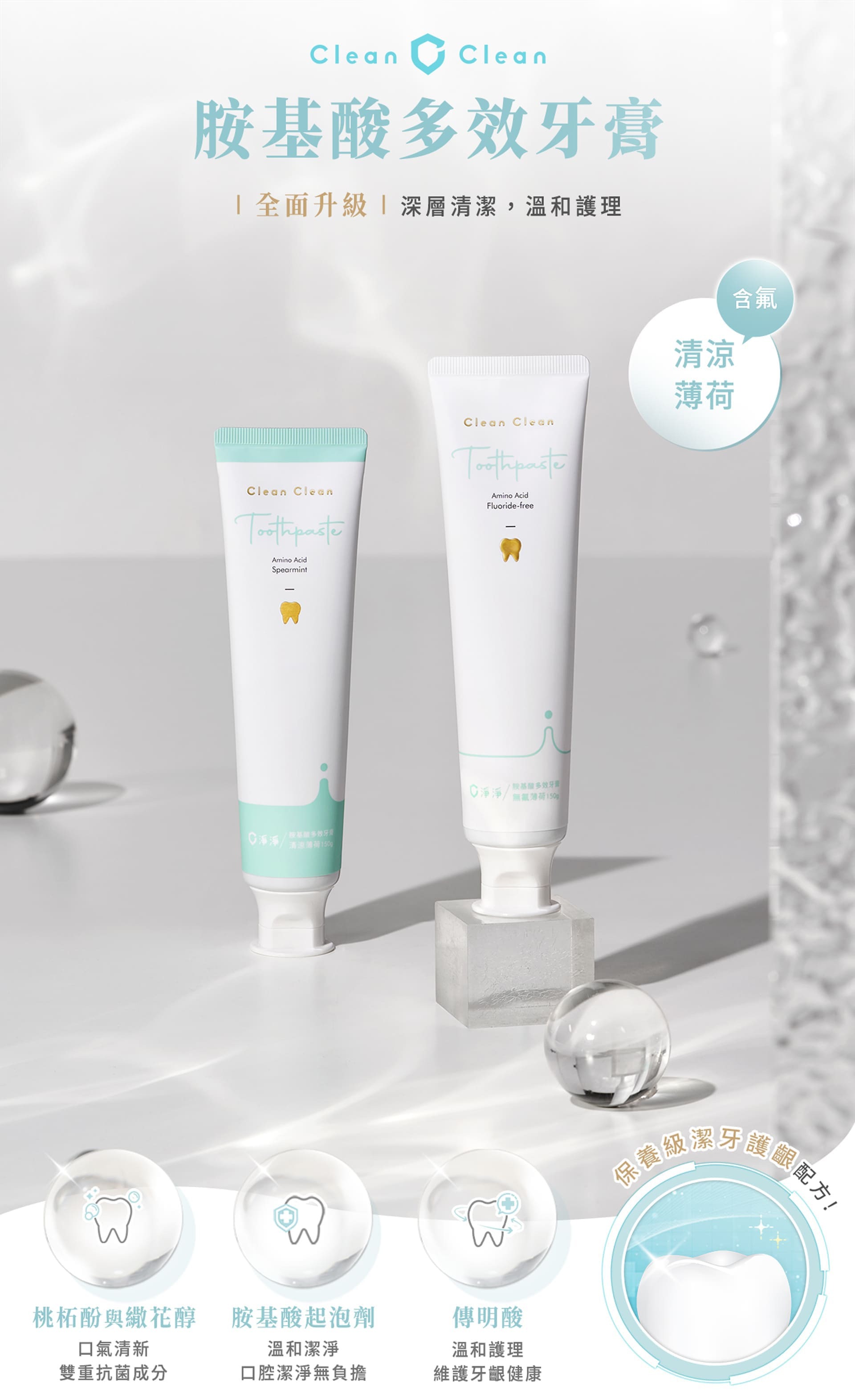 胺基酸起泡劑:低泡好沖洗、減少口腔摩擦。