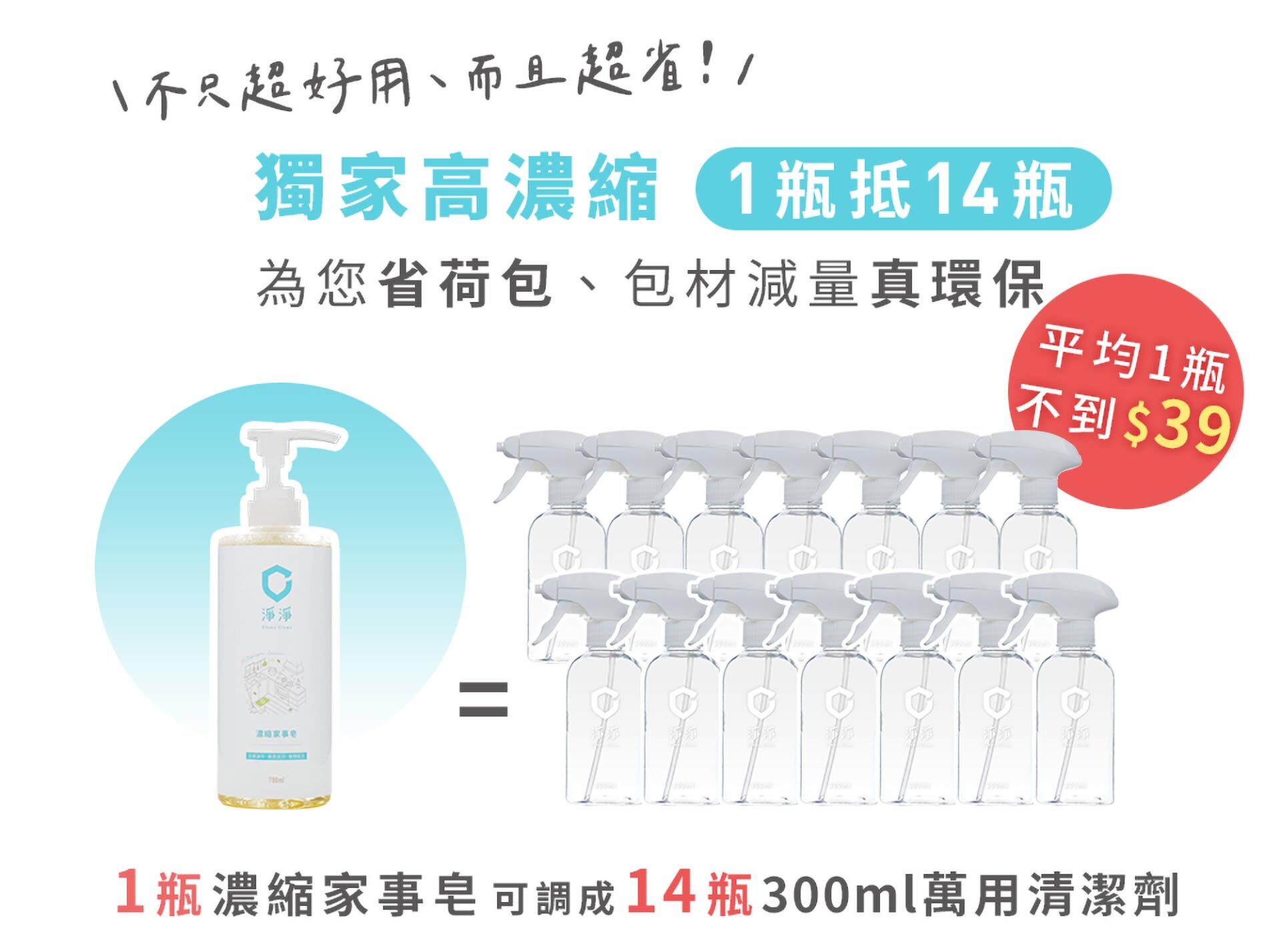 超省高濃縮配方,1 瓶可調 14 瓶、省噴瓶、省荷包。