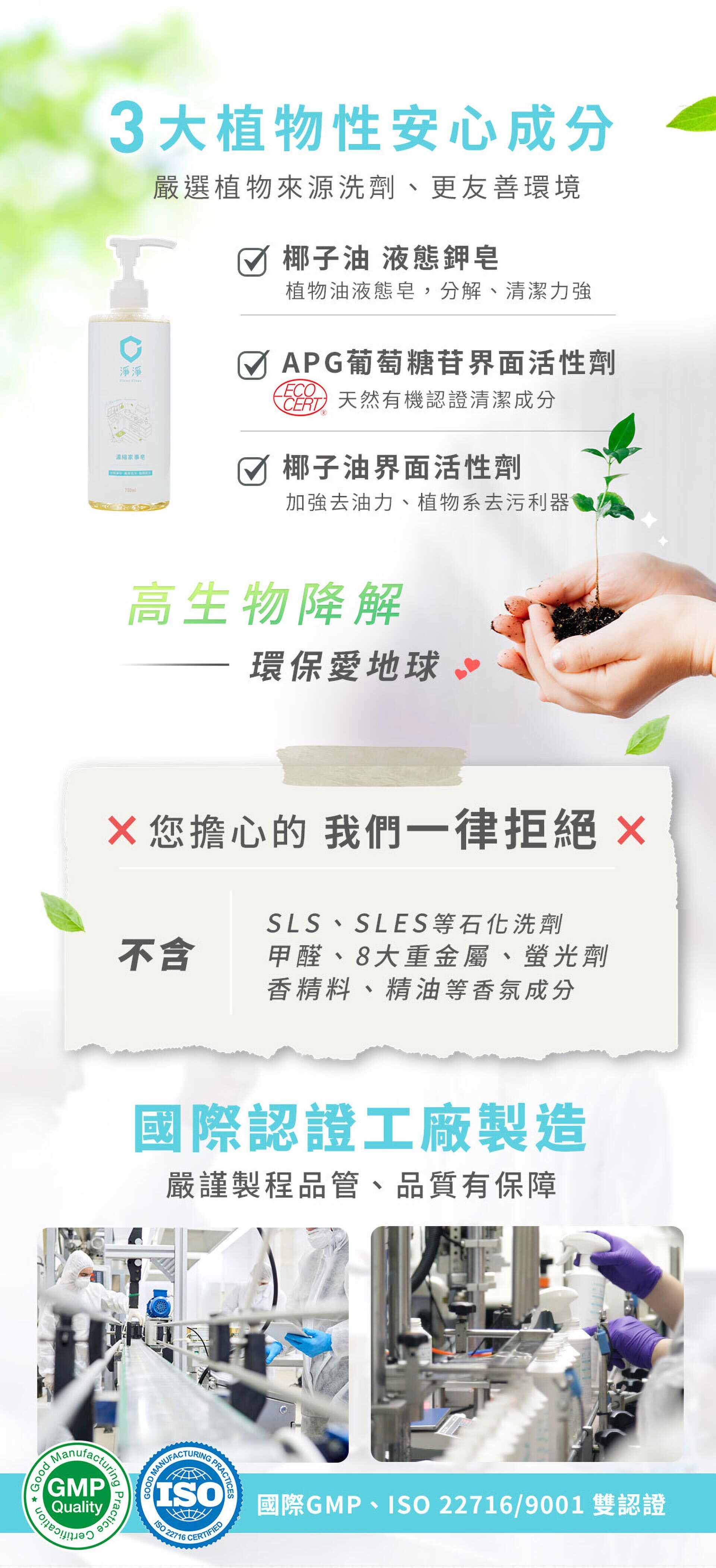 採用植物性來源成分,環保友善環境,安心不傷手。