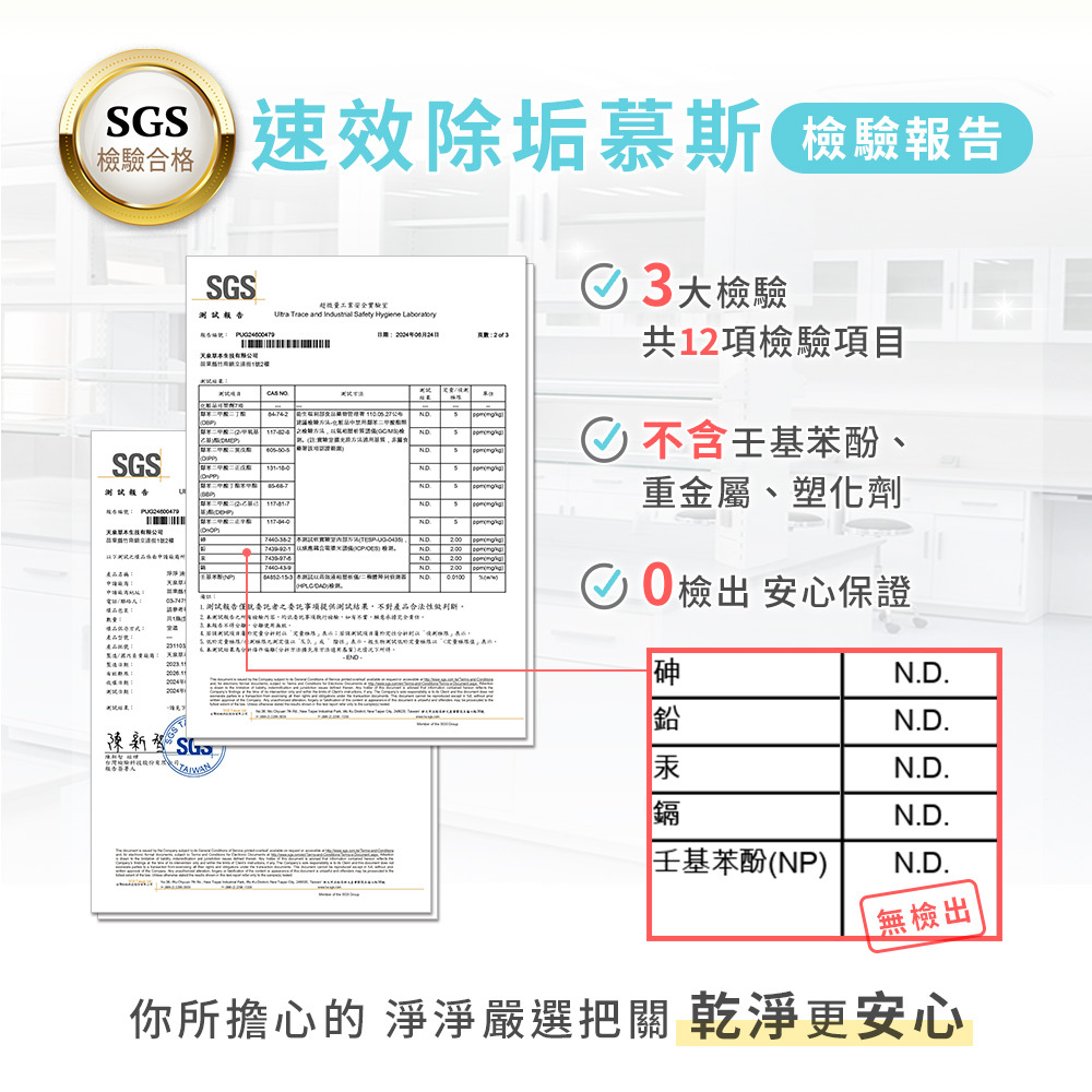 除垢慕斯為「酸性清潔劑」,不適用天然石材、原木、無釉磚、石英磚、電鍍材質上,使用前請務必留意材質限制。