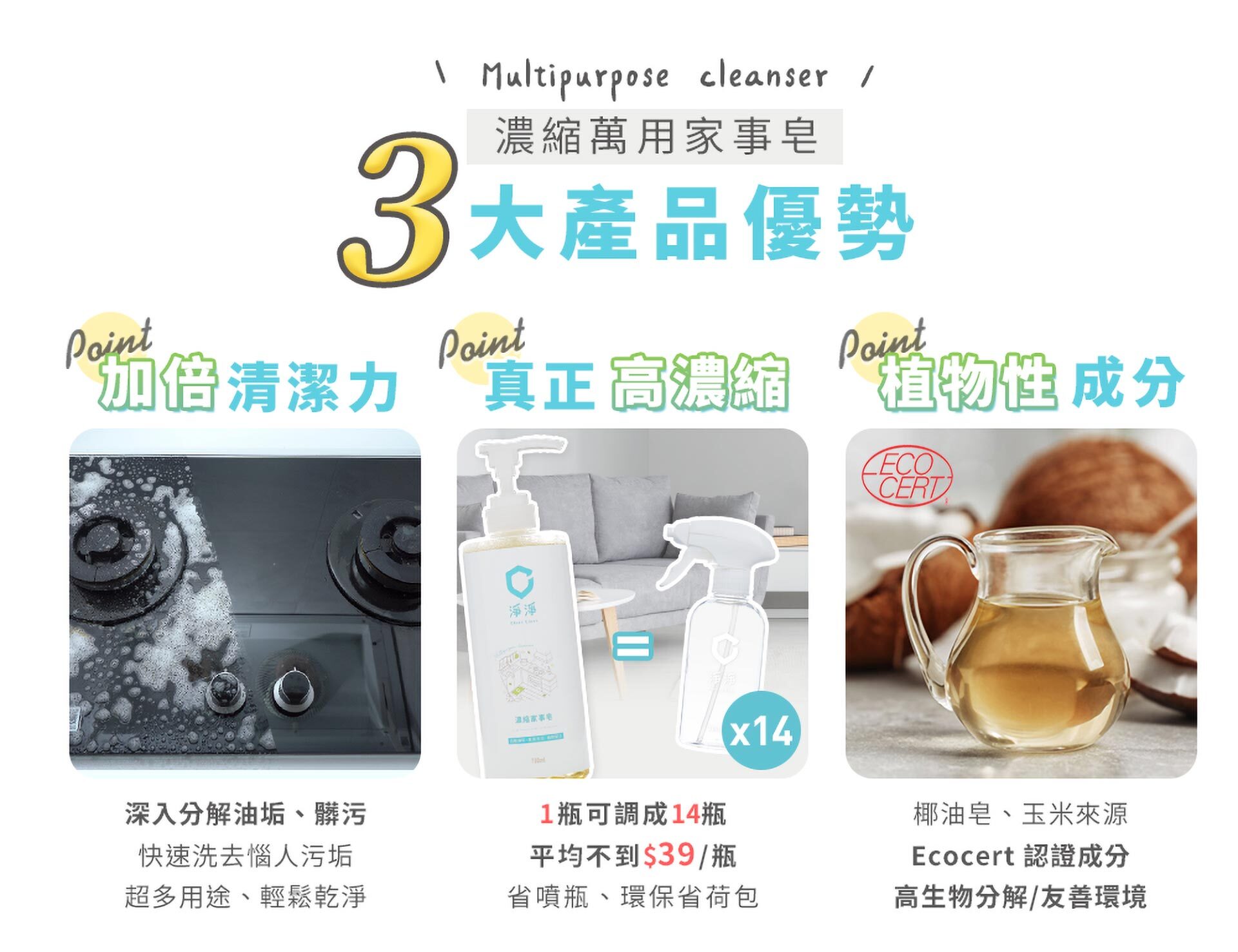 植物來源,使用清潔後,寶寶、寵物都能安心接觸。