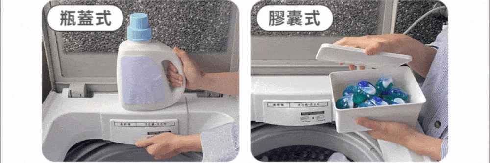 洗衣精壓頭:固定牙口 → 逆時針轉壓頭 ↺ → 壓頭彈起即完成。